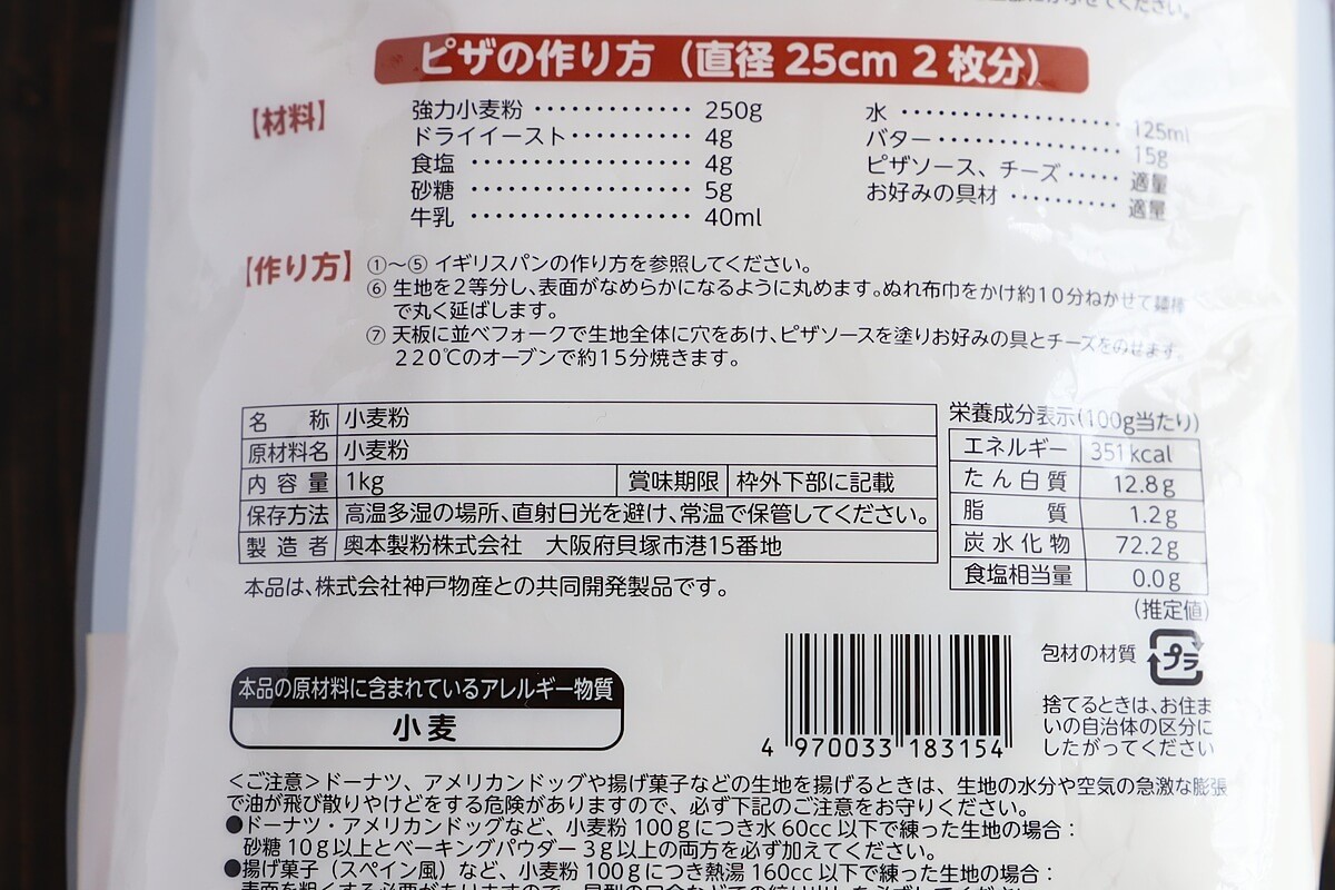 パッケージ裏には、イギリスパンとピザの作り方があります。
