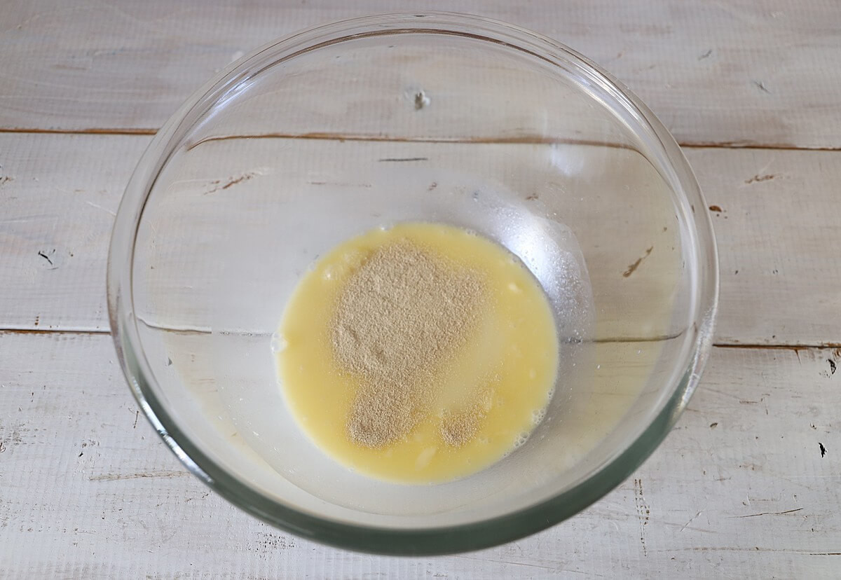 ④インスタントドライイーストを入れ、2分ほど置いてからよく混ぜます。