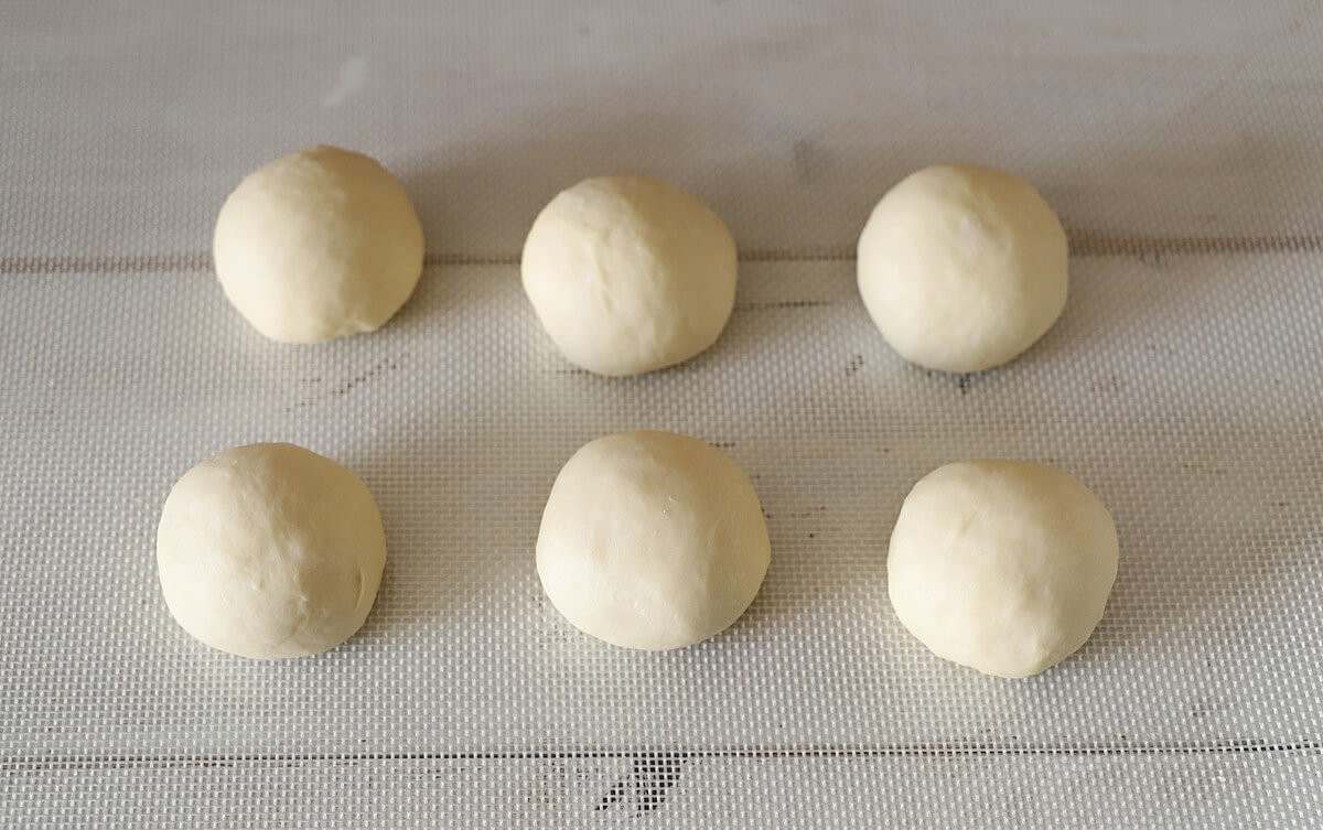 今回は生地を6個に分けましたが、4個に分けるとハンバーガーにも丁度良い大きさになります!