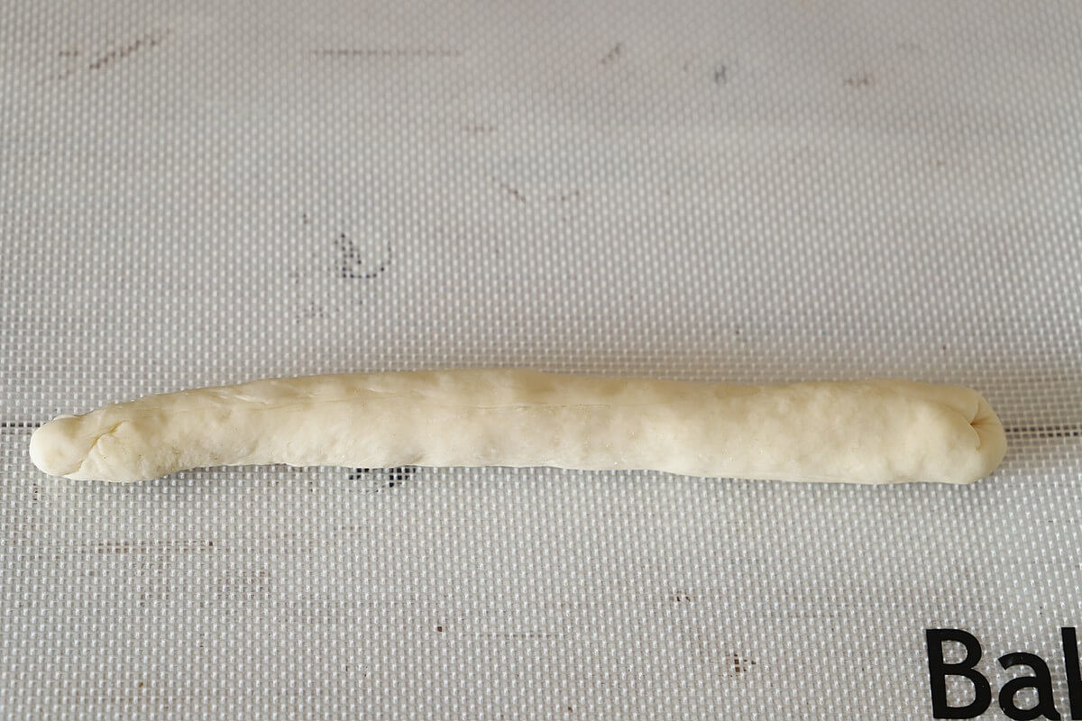 長さが約25cmほどになるまで、手のひらでころころと押して伸ばします。