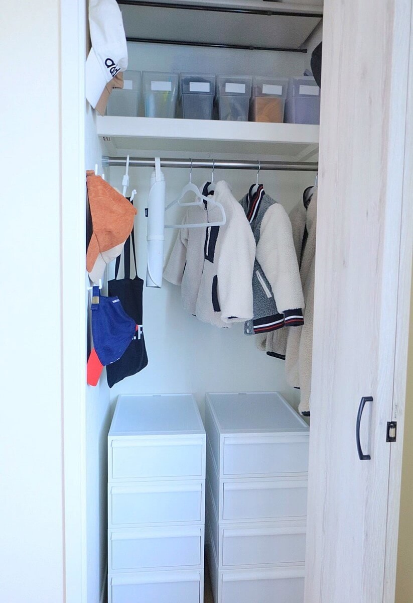 クローゼット内のデッドスペースも活用します。