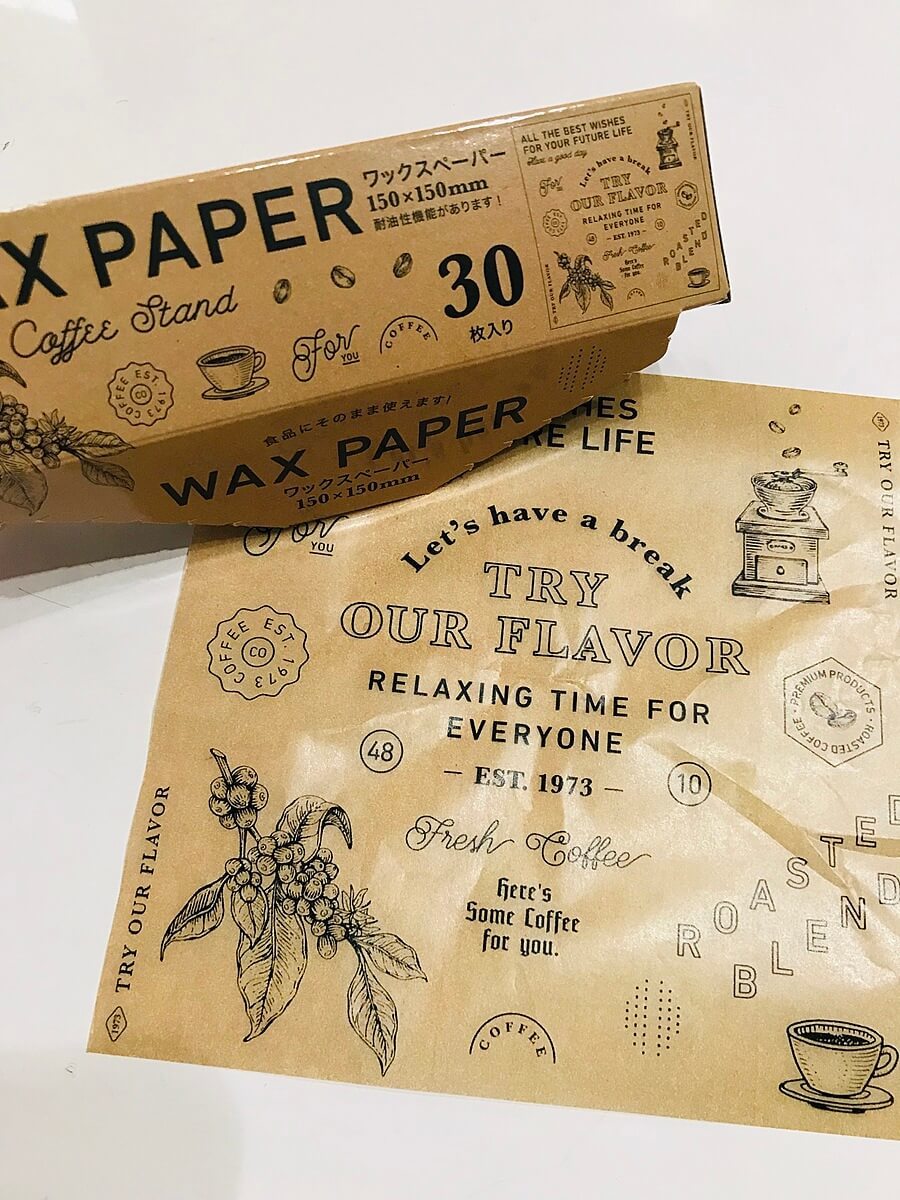 最近、いろいろな柄が販売されるようになりましたワックスペーパー。 食品はもちろん、ラッピングにも使えます。