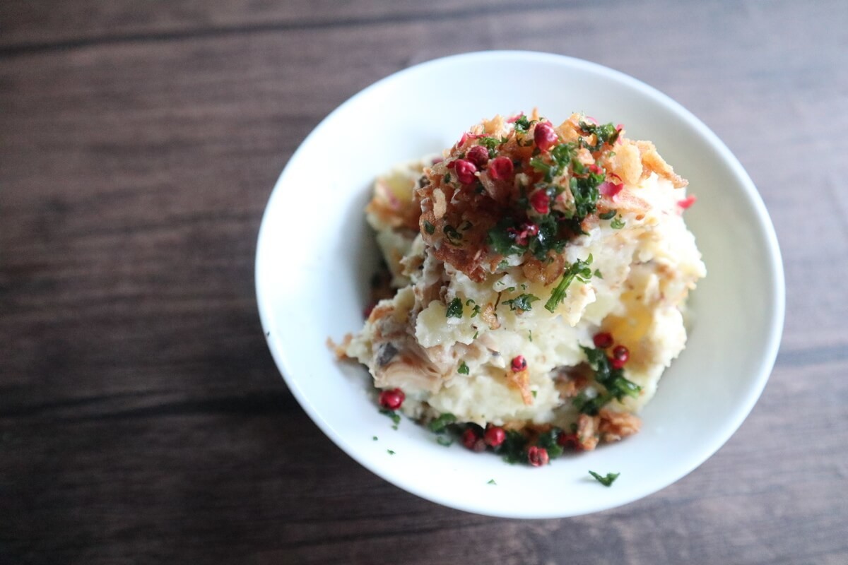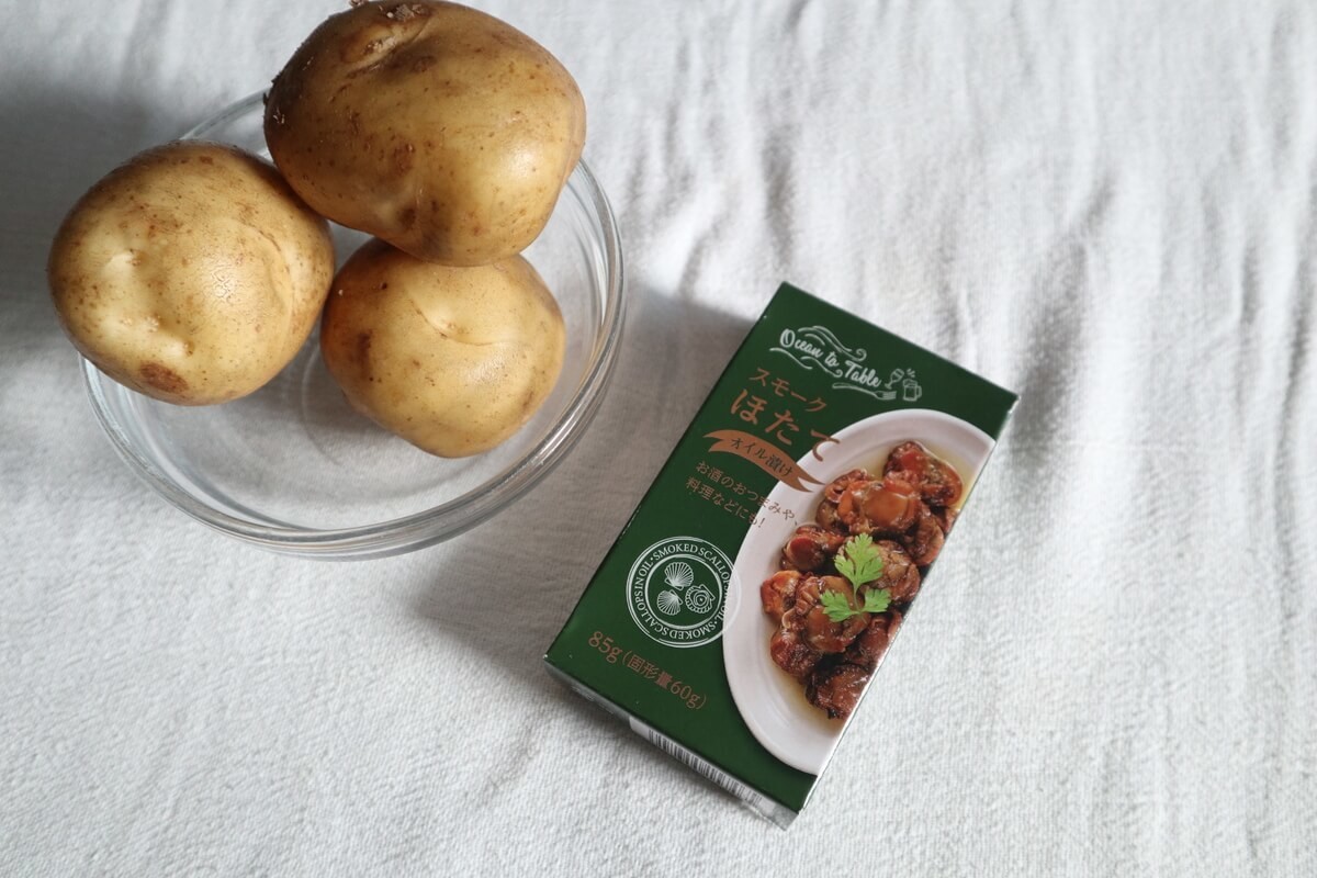 定番のポテトサラダもスモークホタテを使うだけでお洒落な味のポテトサラダに。