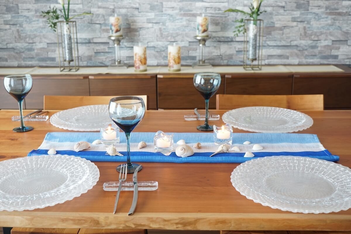 100均でも販売されている「貝」などをクロスの上に置くと、夏らしさを楽しめると思います。