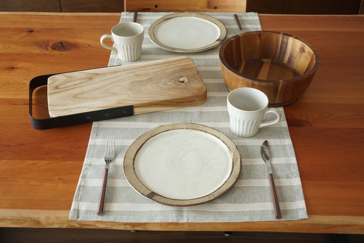 クロスを敷くことで木製の器も印象がぼけてしまうということがなくなります。