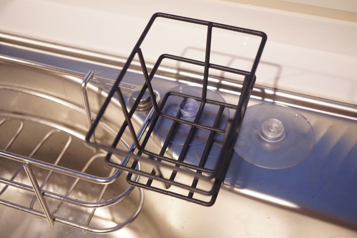 シンクなどの壁面に取り付け、スポンジなどを収納するものです。