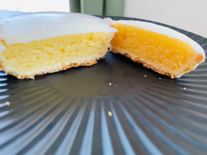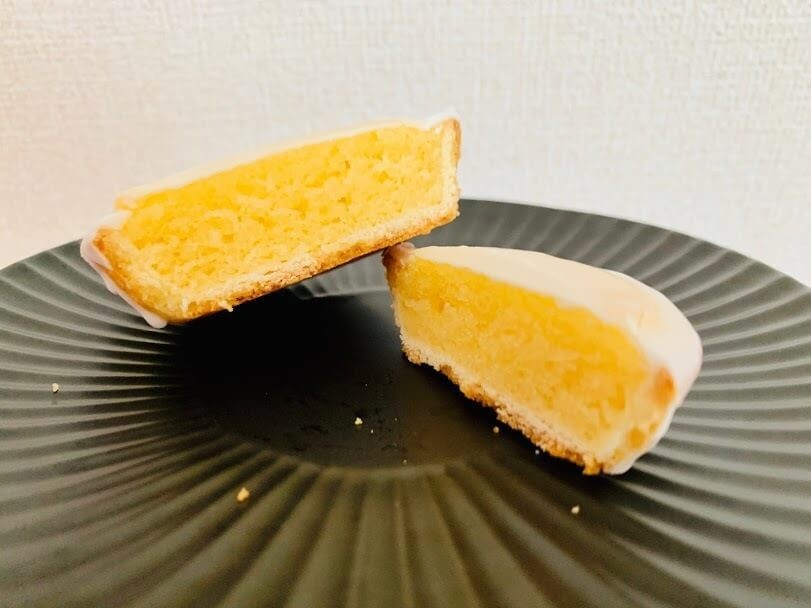おまちかねのグレーズはきゅっと爽やかなレモン味。結構酸味を感じますが、わざとらしくない自然なレモンの酸味が夏らしくてとってもいいですね。しゃりっとした食感も楽しいです。甘ずっぱくて夏のお菓子って感じです!