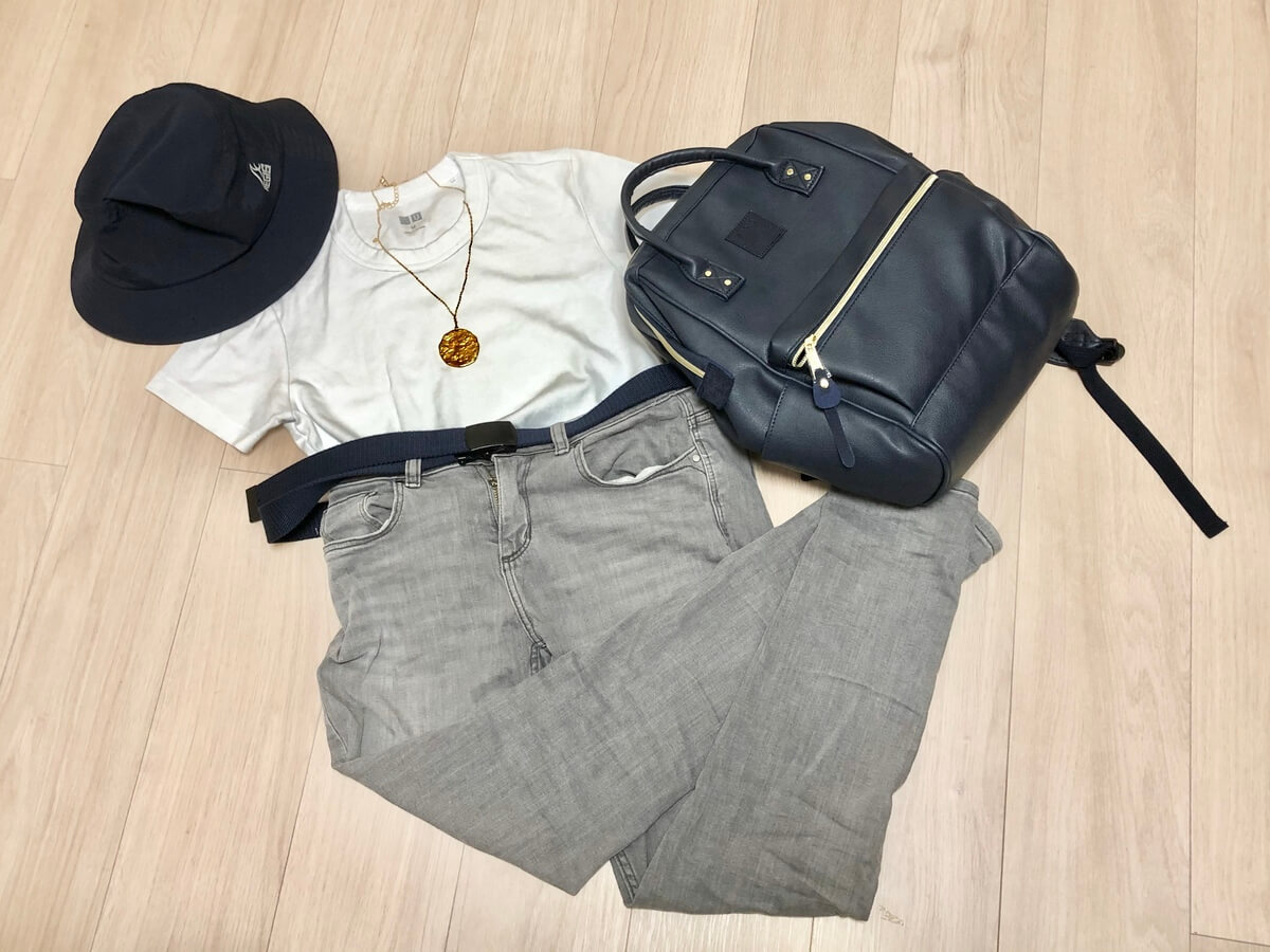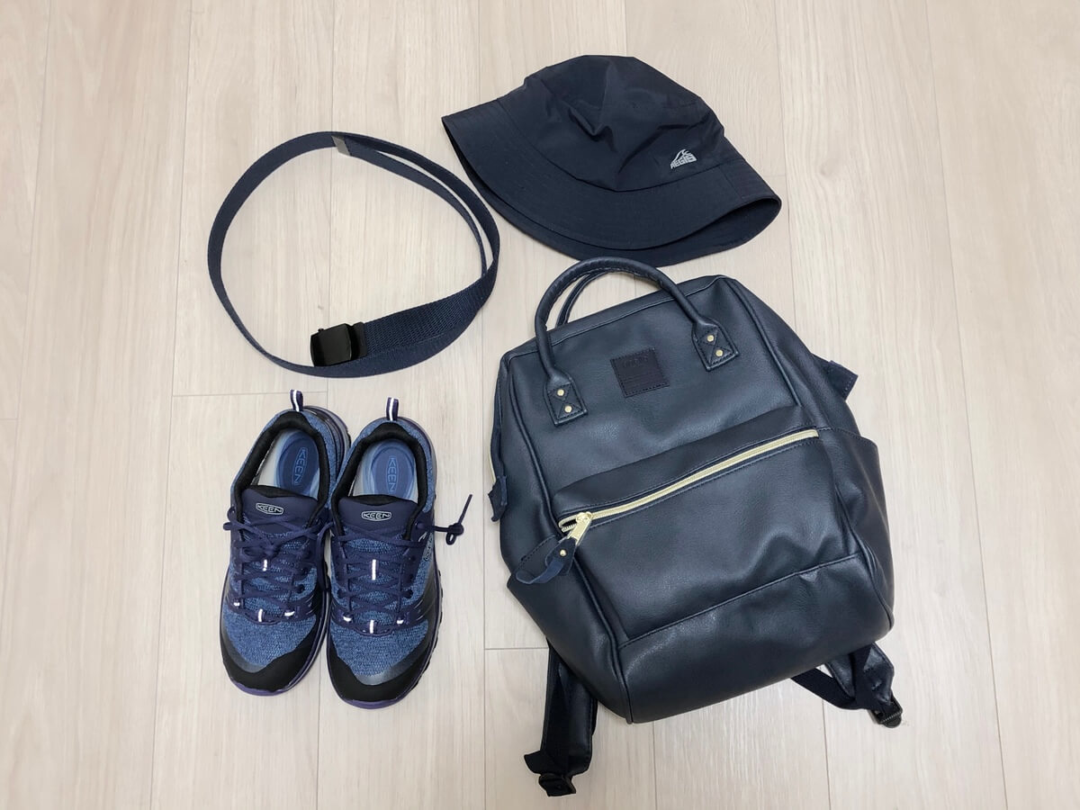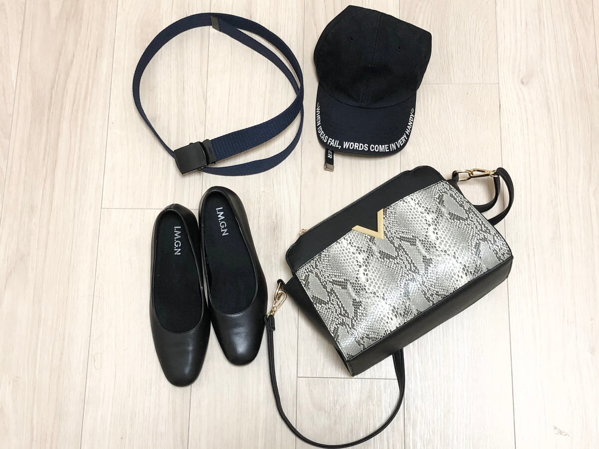 なぜなら、帽子、バッグ、靴、ベルトは、色をそろえて使ったコーデは、まとまりがでるからです。