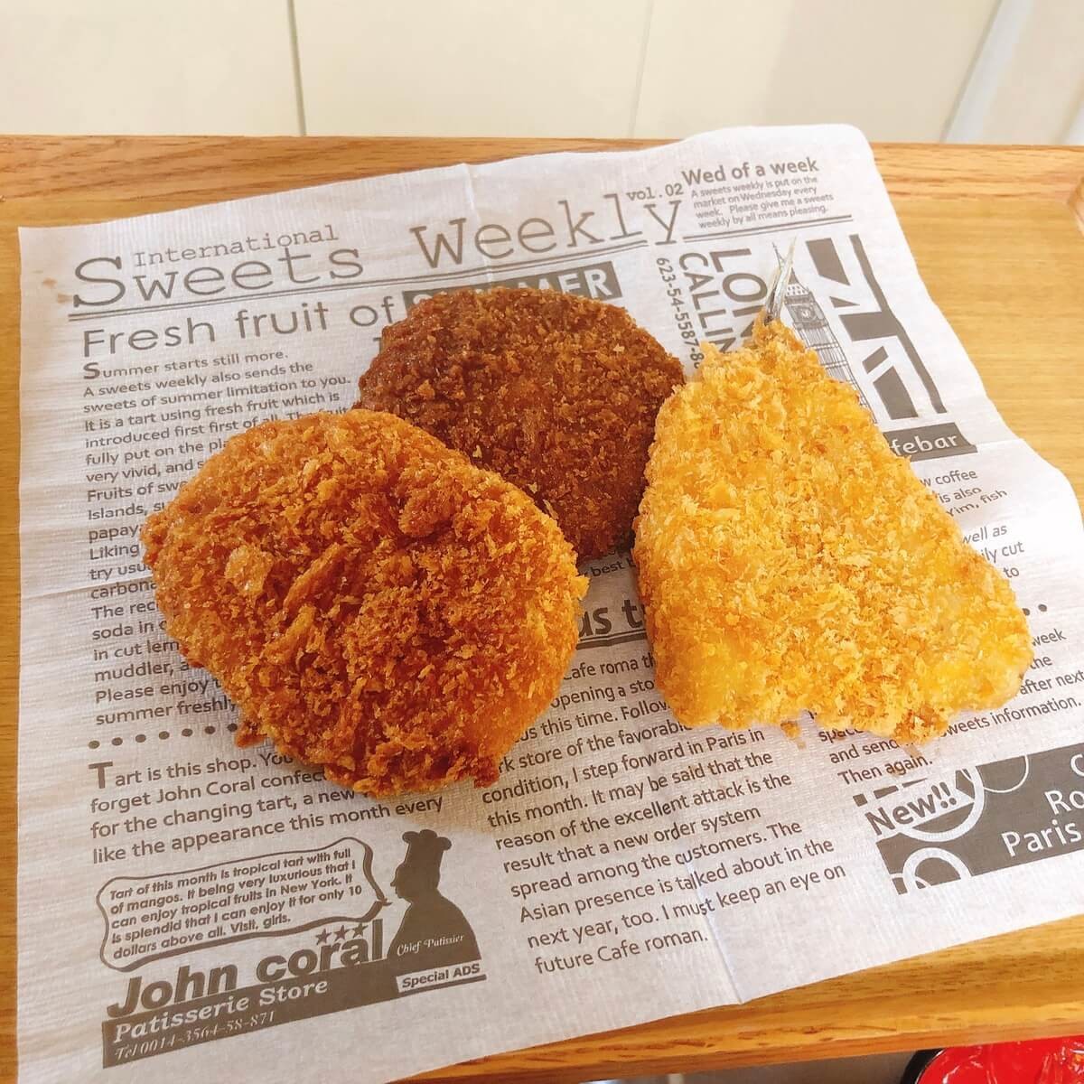 左から牛肉コロッケ・メンチカツ・アジフライになっています。
