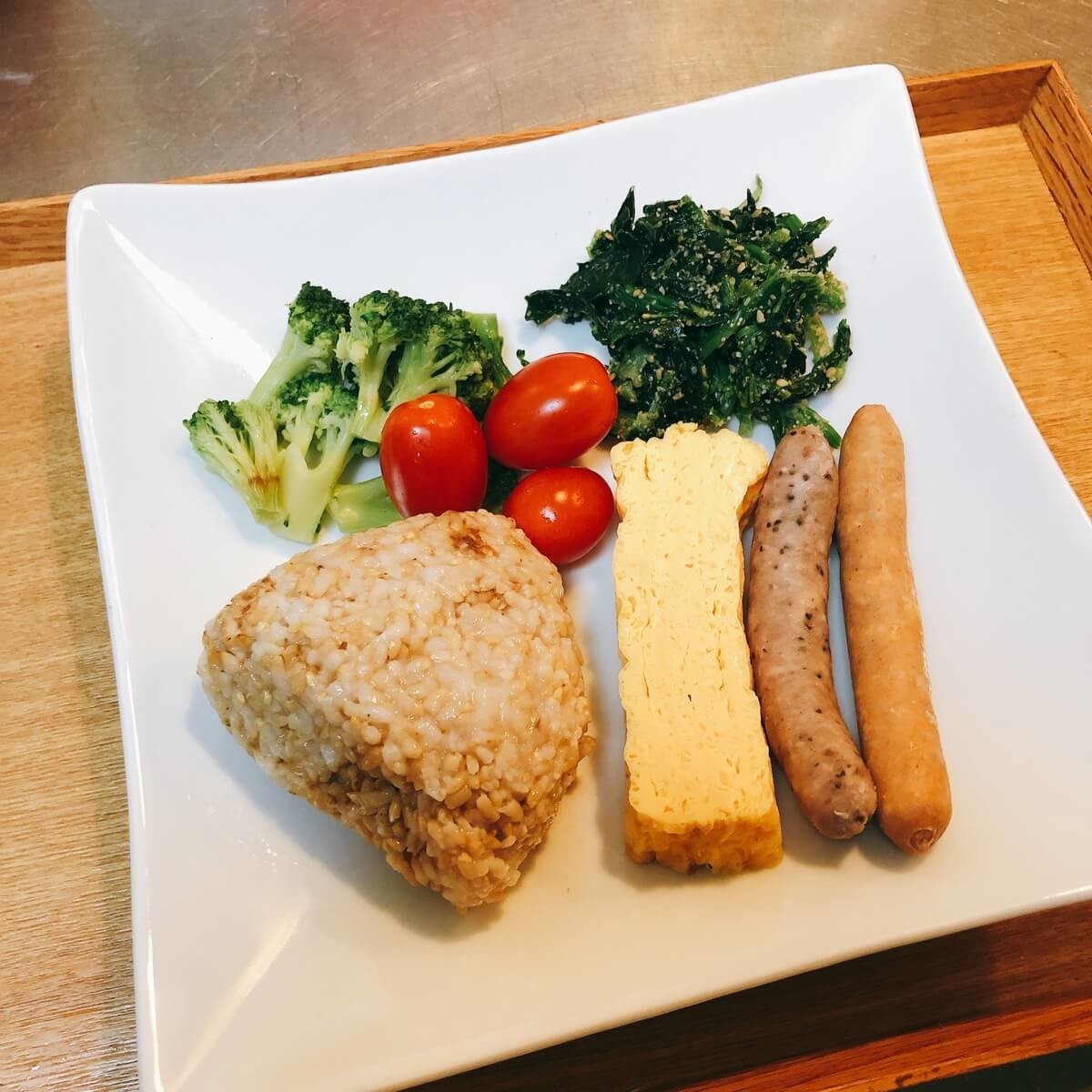 ある日の私の朝ごはんです。作り置きしたものを並べただけですが、厚焼き玉子のおかげで色どりのよいプレートになりました。