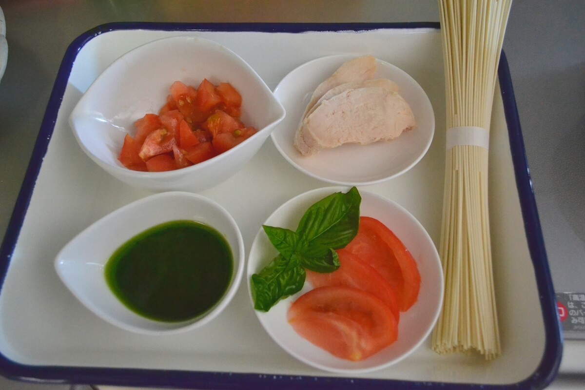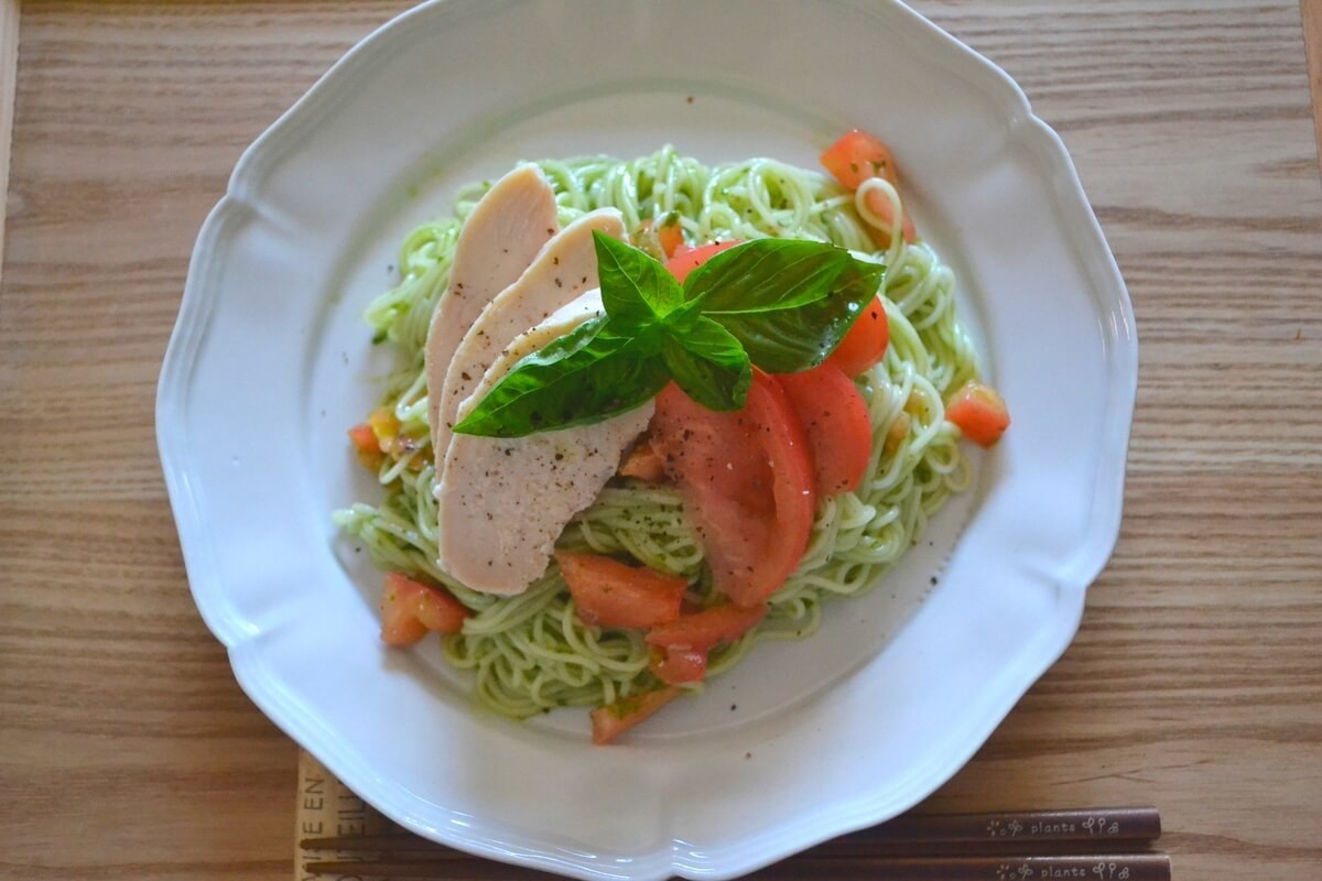 お次は市販のバジルソースを使って作る、夏にピッタリな「トマトバジルそうめん」です。