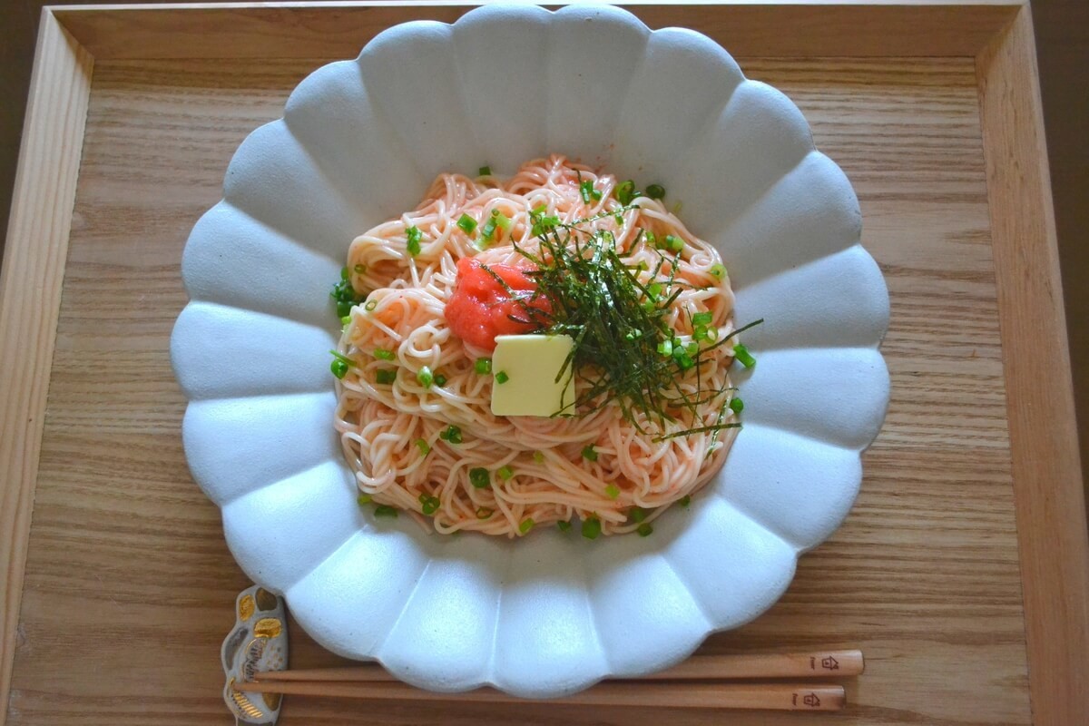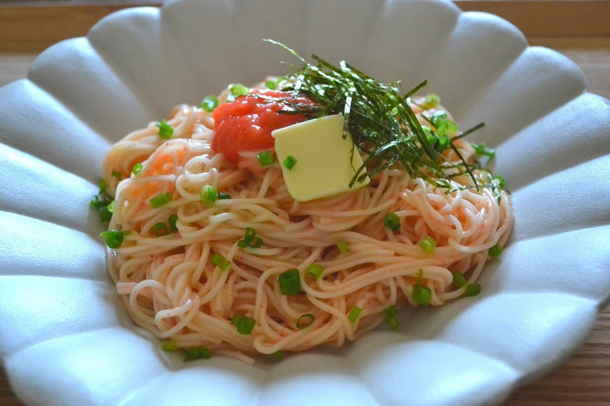 最後にご紹介するレシピは、バターの香りが漂う「めんたいバターそうめん」です。