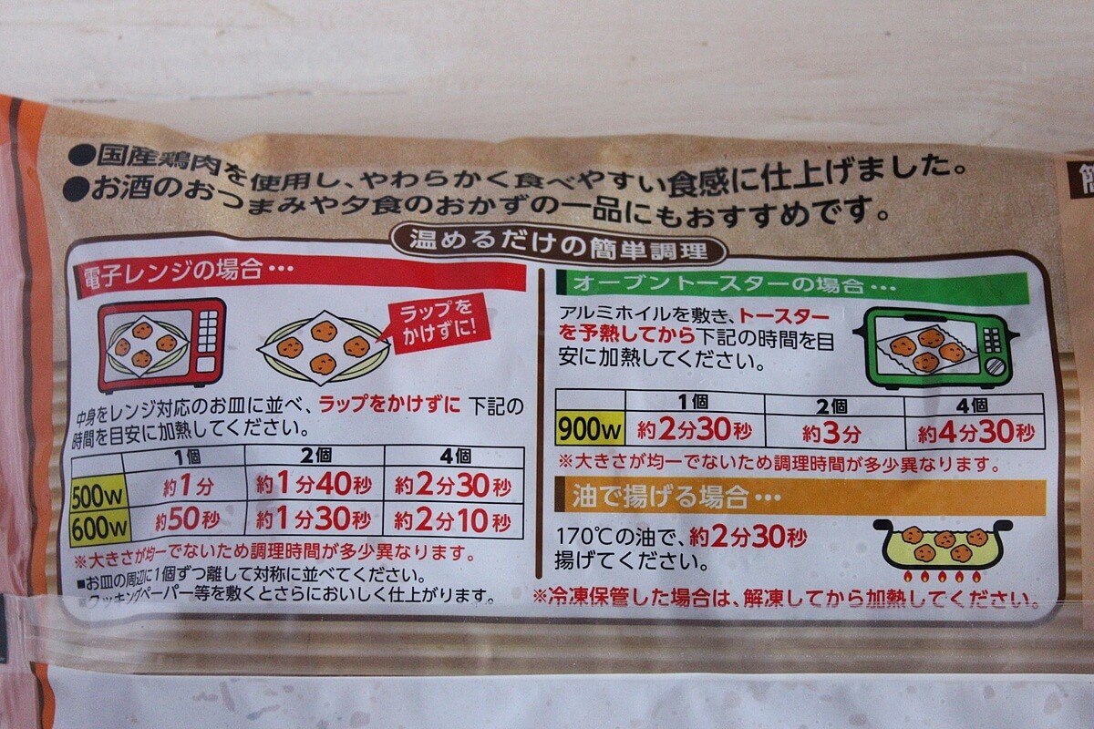 調理方法は、レンジ加熱、オーブントースター加熱、それから油で揚げる3通りの方法があります。