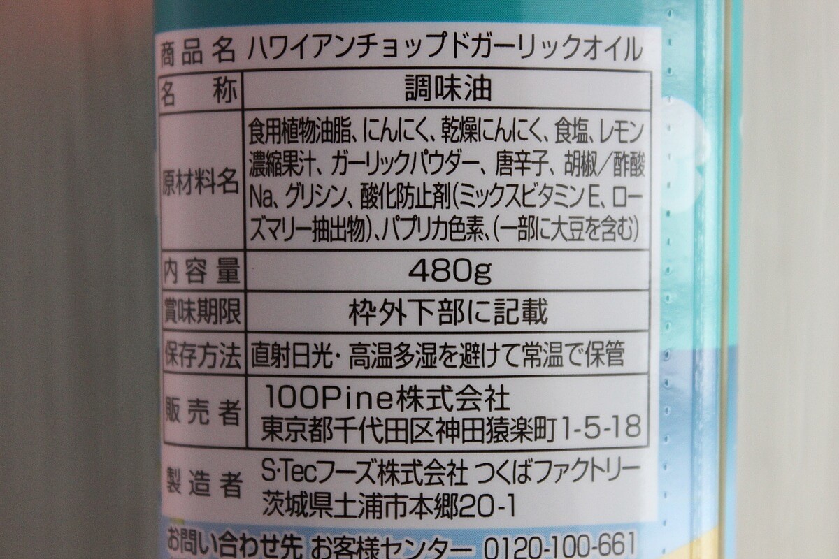 「ハワイアンチョップドガーリックオイル」 480g入
