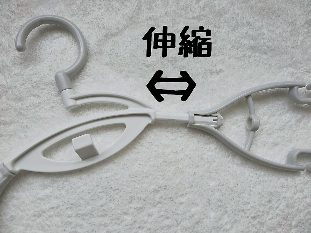 アームは引っ張ると伸ばすことができ、洋服のサイズに合わせて調節することが可能です。