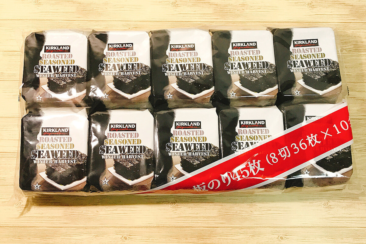 10パック入りで迫力のあるコストコの韓国のり。コストコプライベートブランド「カークランドシグネチャー」の商品です。