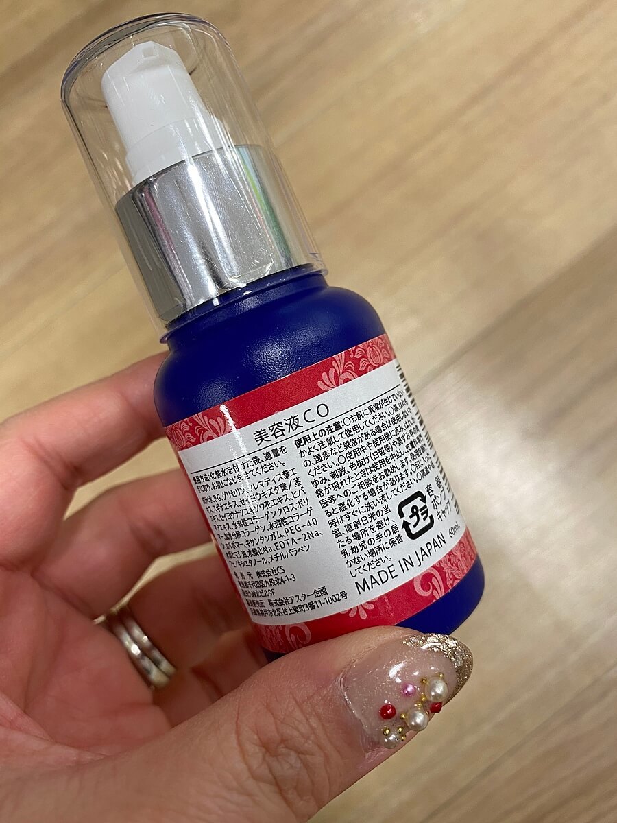 透明な液体で、少し粘度のあるエッセンスです。化粧水の後にペタペタ塗っています。