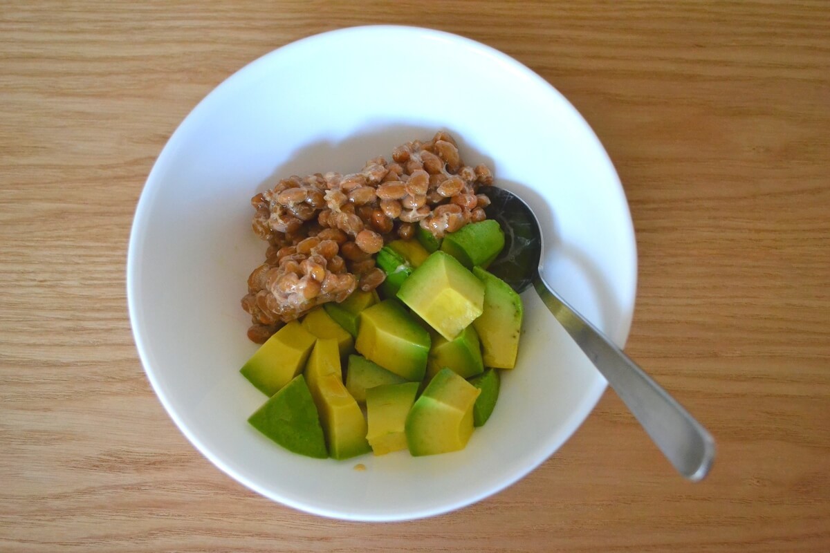 (2)納豆とアボカドを納豆に付いているタレと和える