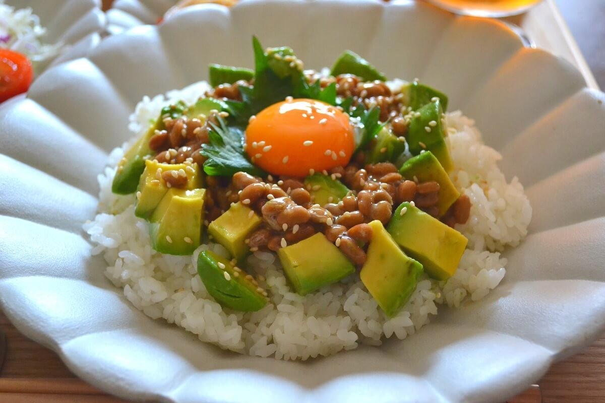 最初に紹介するレシピは、「アボカド納豆丼」です。材料をカットしたら和えるだけの簡単メニューです。