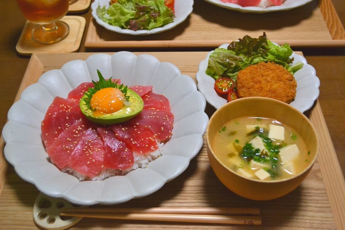 最後に紹介するレシピは「アボたまマグロ丼」です。これまた簡単すぎるズボラ飯ですが、我が家の大人気メニューです!