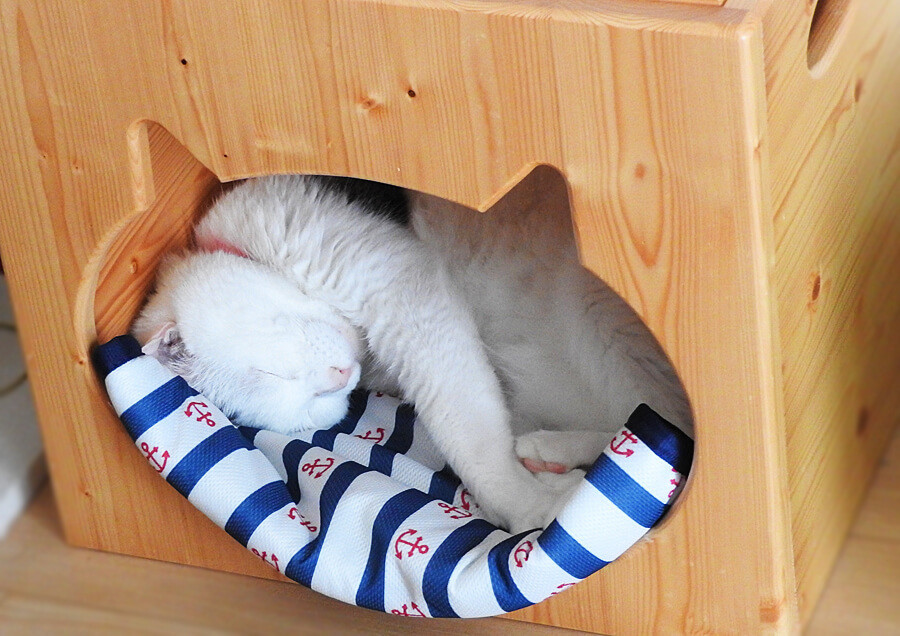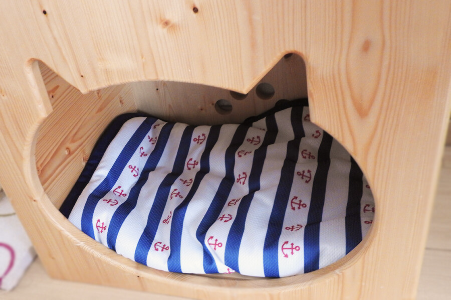 早速、我が家特製の猫ハウスにブランケットを設置。猫ハウスに入りきりませんでしたので、ブランケットは半分に折りました。