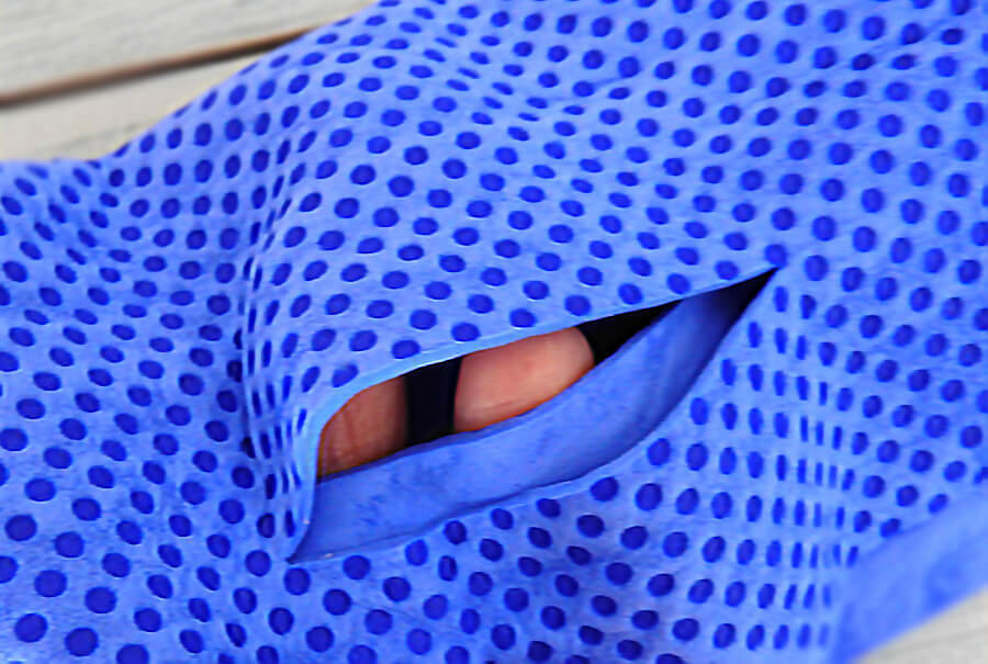 クールタオルの表面には凹凸がありました。ゴムのようなさわりごこちで、そのままの状態でも少々ひやっとしてました。