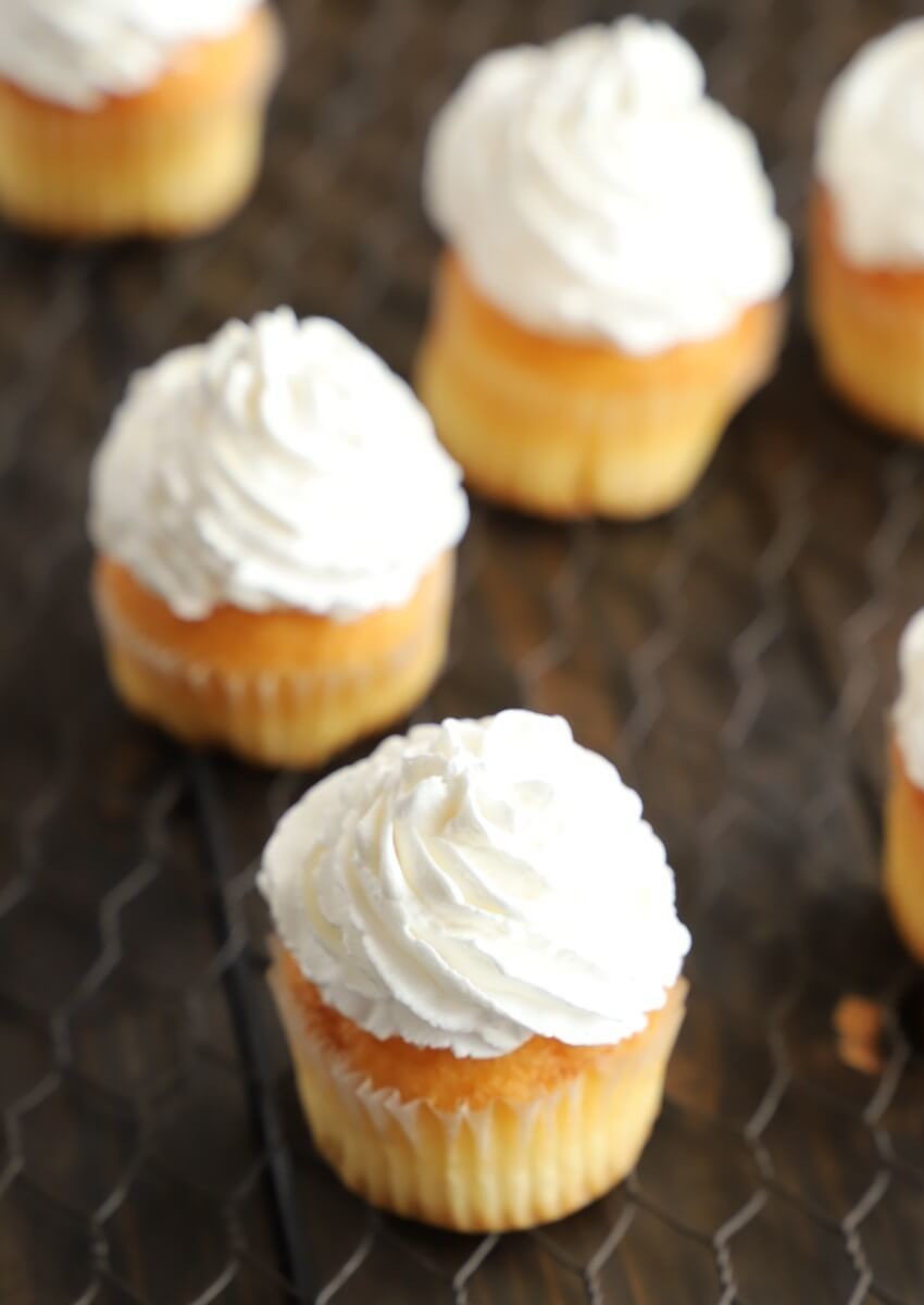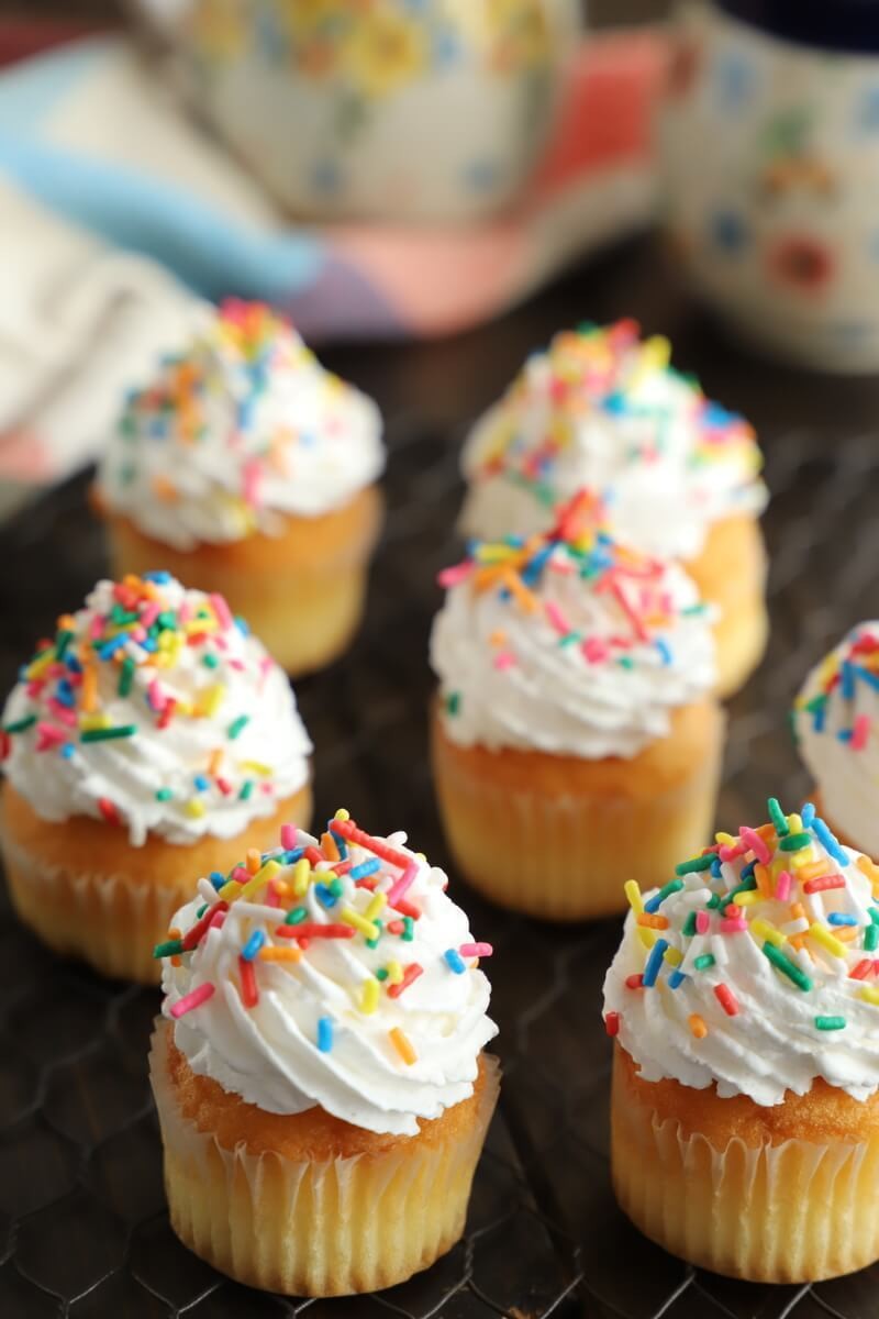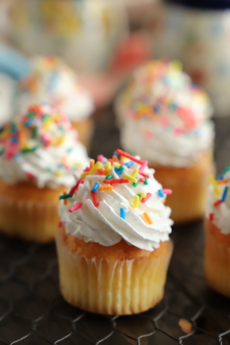 まずは市販のプチケーキの上に生クリームをのせたものの上に、パラパラとかけてみました。