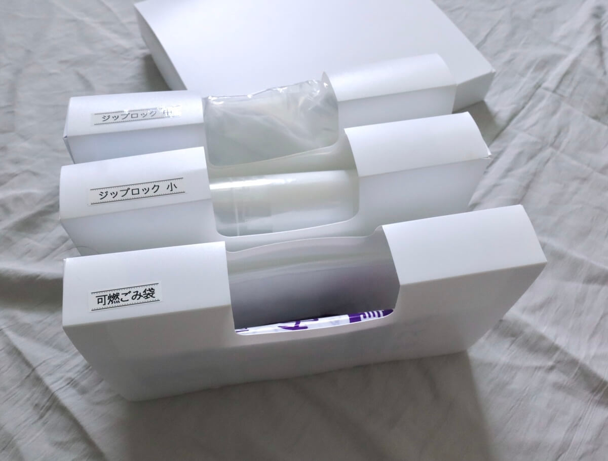 わが家では大サイズと小サイズの2種類を使用していますが、まとめて入れてしまうとどちらか使いたい時に探すのが手間になってしまいます。