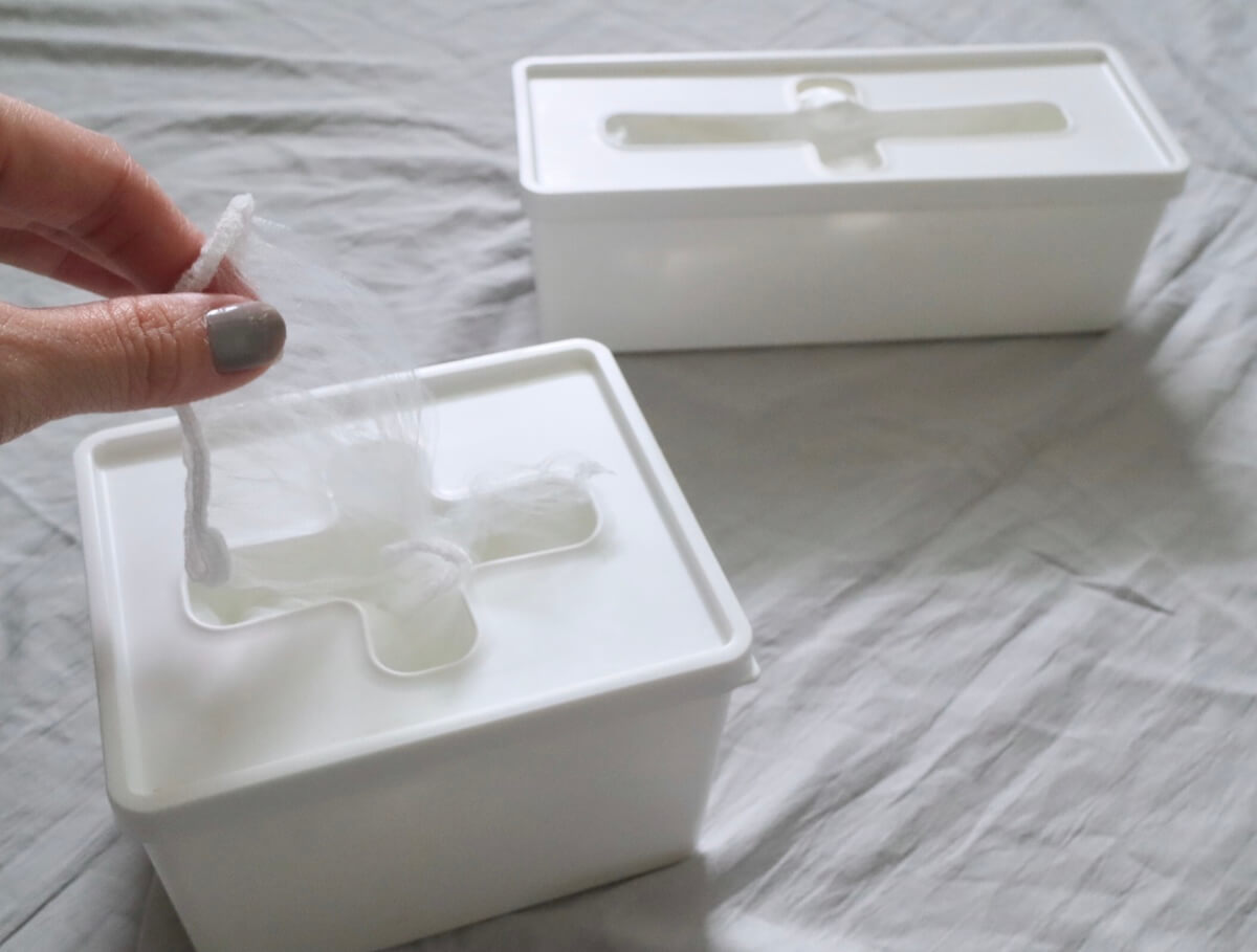 ケースに入れておけば引き出しの中でふきんが動いてごちゃつくこともありませんし、さっと出せる場所にあるのはやはり助かります。