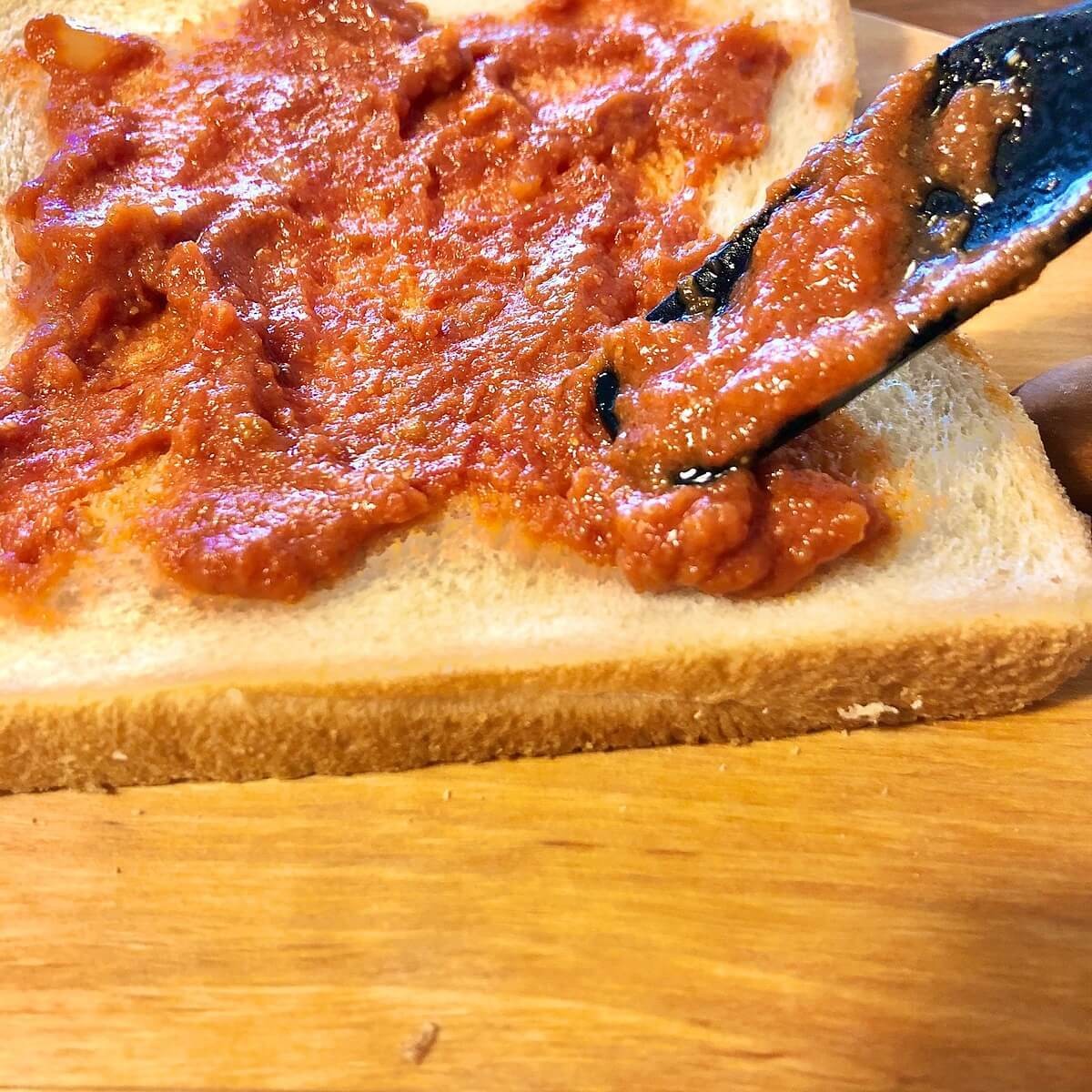 4人分のパスタを作って「ちょこっと余ったパスタソース」は、パンにササッと塗ってピザトーストを作ります。