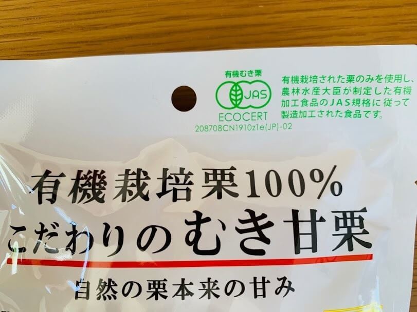ダイソー「有機栽培栗100% こだわりのむき甘栗」100円+税