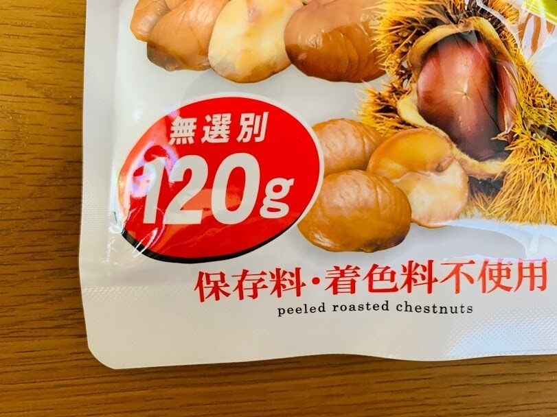 しかもたっぷり120g入り!元祖『甘栗むいちゃいました』は、コンビニでもよく見かける35gサイズが150円+税(メーカー希望小売価格)、スーパーなどに置いているちょっと大きめサイズが75gで300円+税!(公式HP参照です)