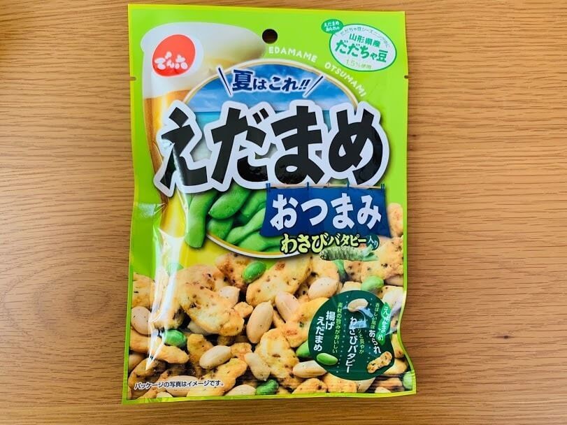 豆菓子で有名なでん六さんが出しているえだまめおつまみ。えだまめあられ、わさびバタピー、揚げえだまめの3種のスナックが楽しめます。山形県産のだだちゃ豆も配合されています。