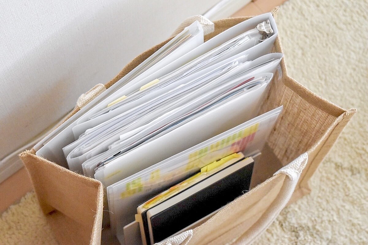 スチロール仕切りスタンドを入れることで書類をたくさん入れても倒れることなく自立しますし、持ち手が付いているので使いたい場所に簡単に持ち運べてとっても重宝しています。