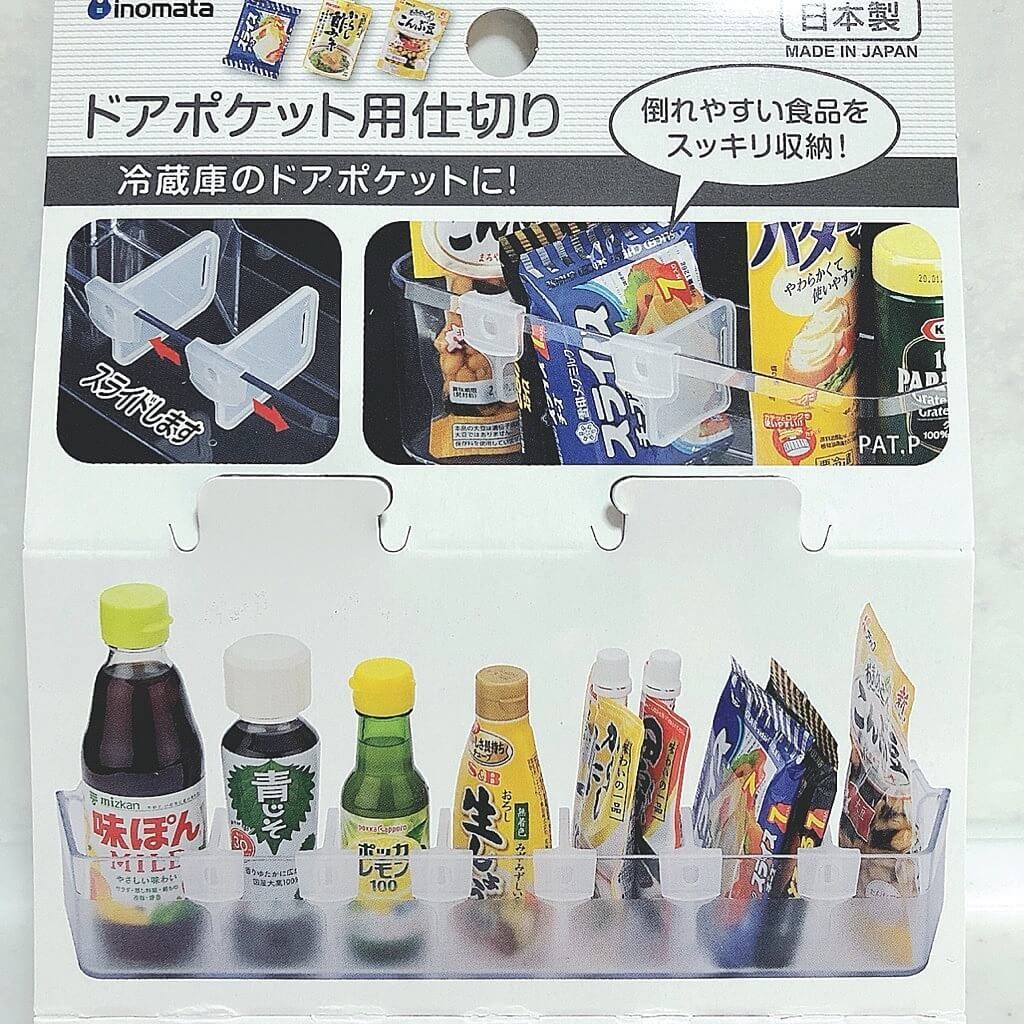 ドアポケット仕切りを差し込むだけで、"分ける"と"支える"ができてしまいます。挟むだけなので、どんな冷蔵庫メーカーを問わないのも高ポイントです。