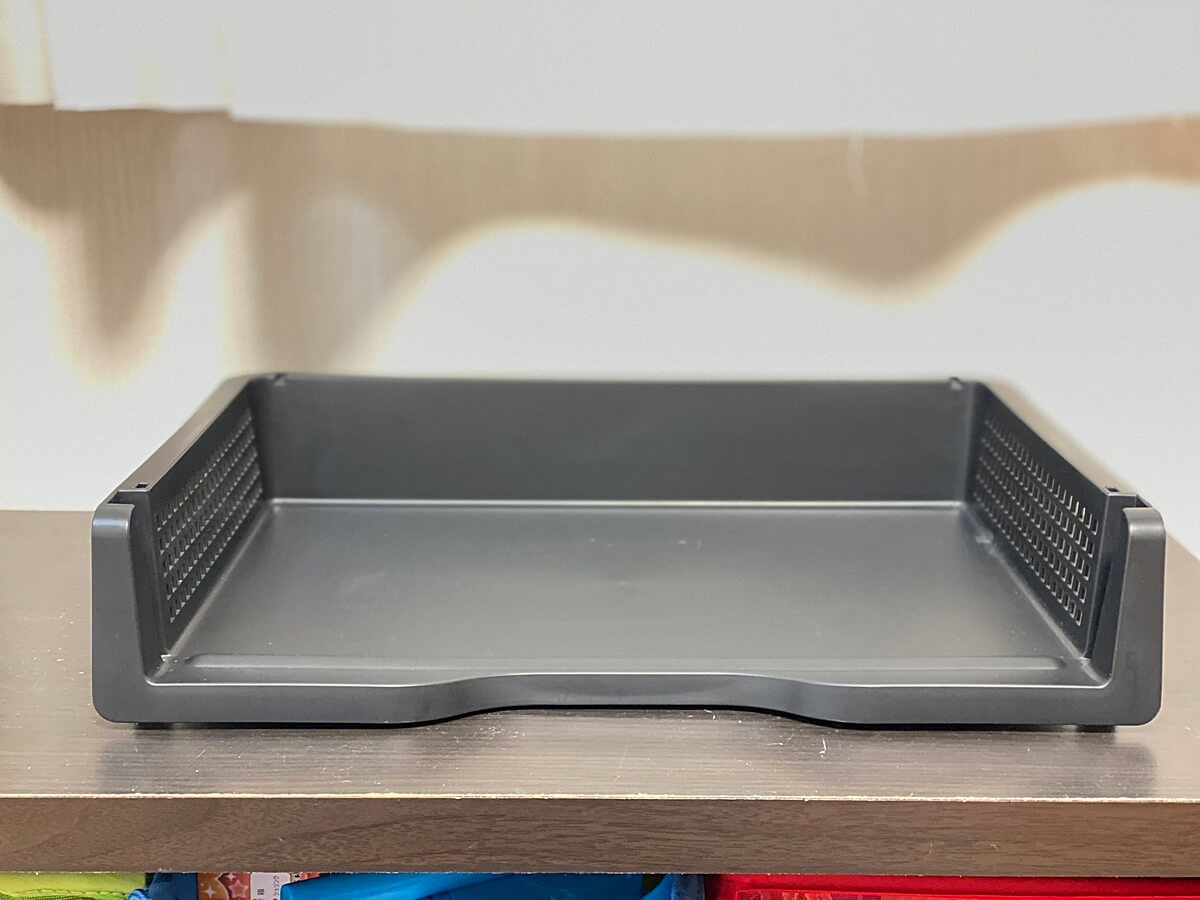 セリアのレタートレーに、学校の宿題やドリルをまとめて入れています。1カ所にまとめておけば、わざわざ勉強するために出す必要もありません。たったこれだけですが、子どもにとっては「手間」が省け、勉強スイッチが入りやすくなりますよ。
