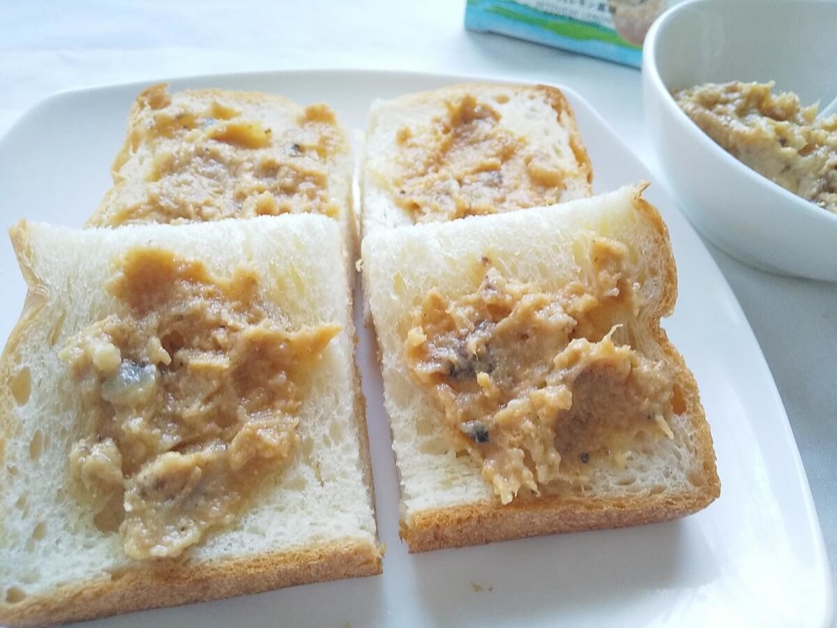 何の変哲もないお手頃価格の食パンですが、このリエットをのせるだけでリッチな味に変貌!いつものトーストが簡単にグレードアップしました。