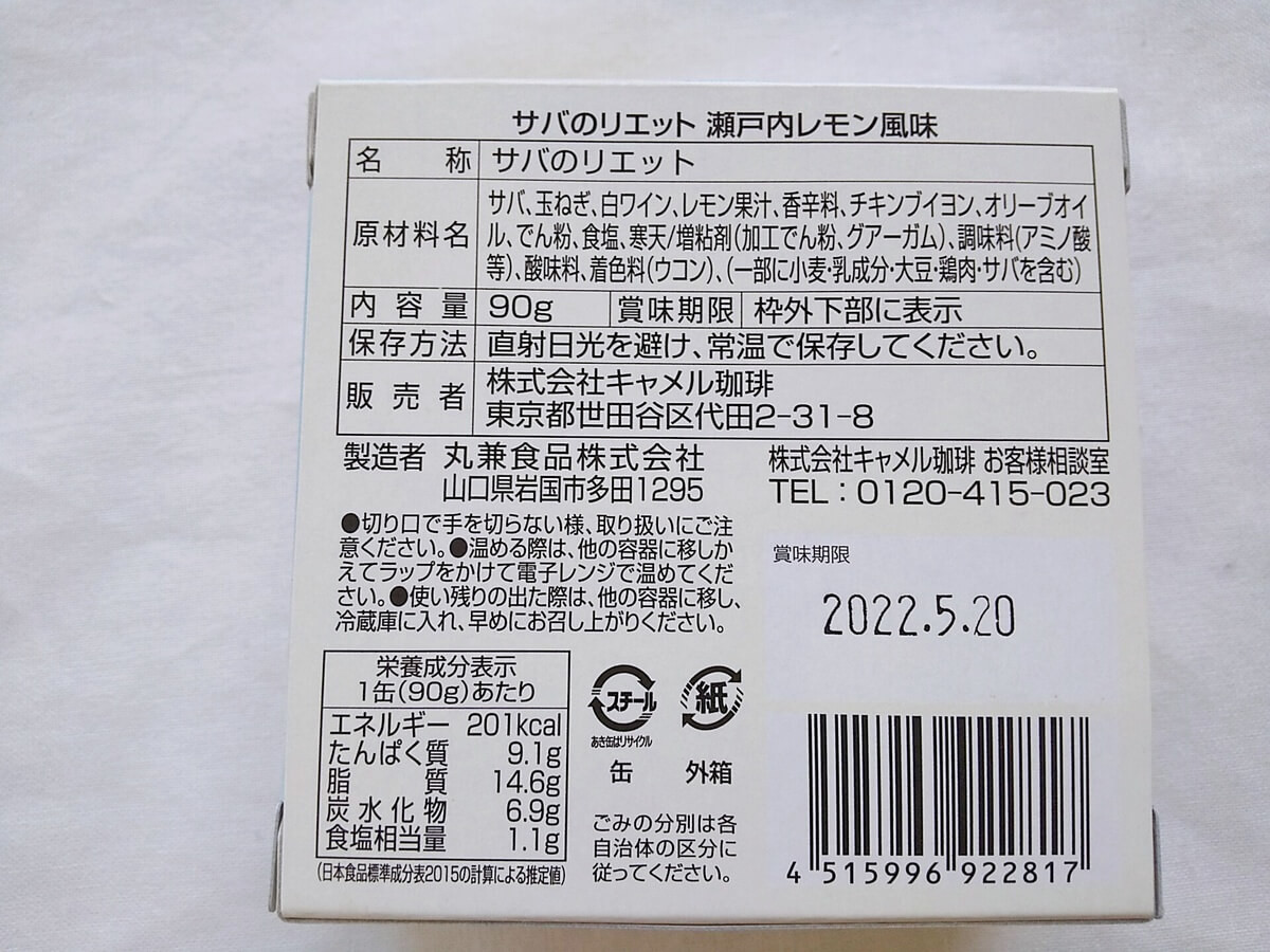 カルディ「瀬戸内レモンバル サバのリエット 瀬戸内レモン風味」