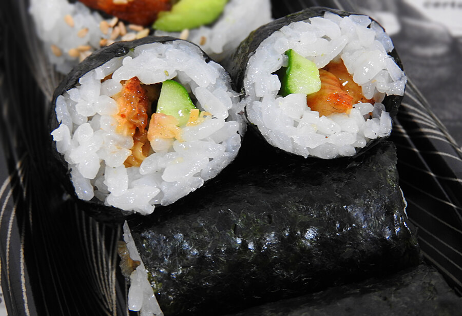 スシローでは、単品の巻き物もお持ち帰りOKです。我が家の子ども達が大好きな「うなきゅう巻」150円(税抜)をお持ち帰りしてみました。