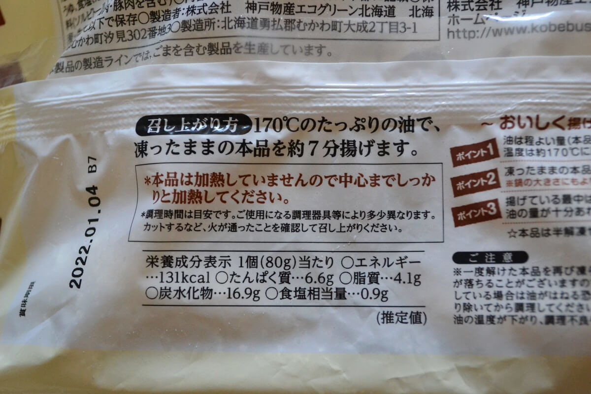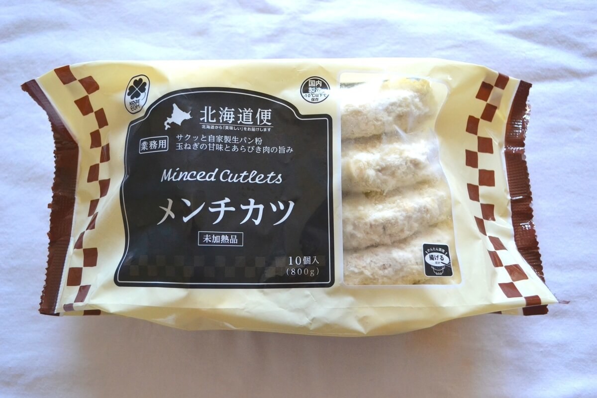 最初にご紹介するのは、業務スーパーの冷凍食品「北海道便 メンチカツ」です。