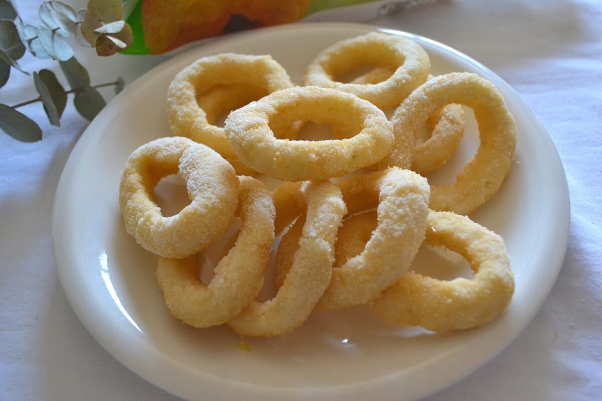 袋から出すと、揚げ調理済みのオニオンリングが入っています。