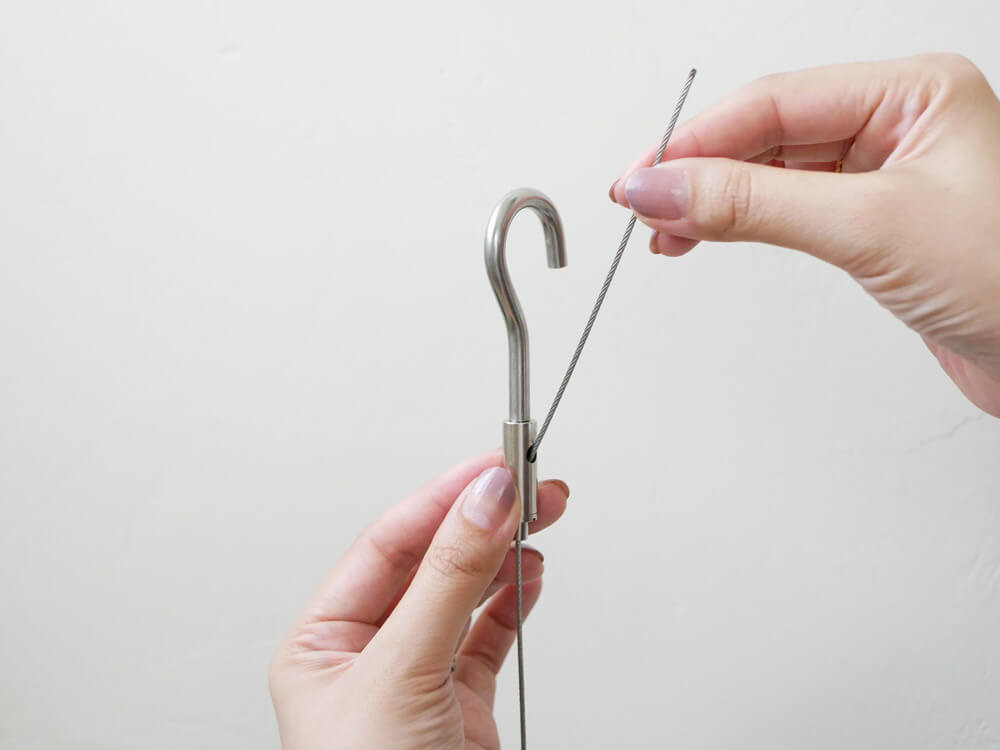 吊り下げ用のワイヤーは主張しすぎない細いステンレス製で、空間に合わせて長さを調節できます。