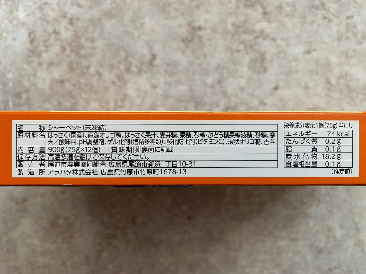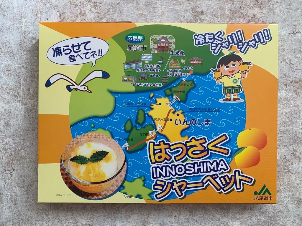 購入してから気がつきましたが、「因島のはっさくシャーベット」は2020年の新商品だそう。もともと大人気の「因島のはっさくゼリー」の姉妹品として登場したようです。
