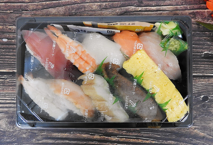 定番のネタが選出されているみたいですね。店頭から持ち帰って20分程過ぎたあたりでお寿司を食べましたが、ネタがカピカピすることもなく、美味しくいただけました。店内でお寿司を食べているのと変わりません。