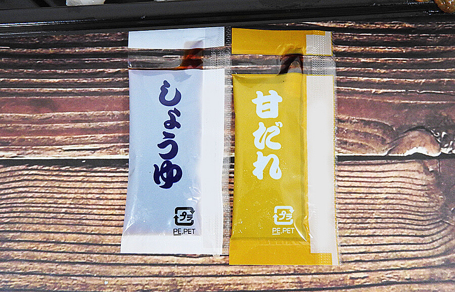 お寿司の横には、しょうゆと甘たれもついていました。「極旨人気10種セット」に入っているあなご用ですね。