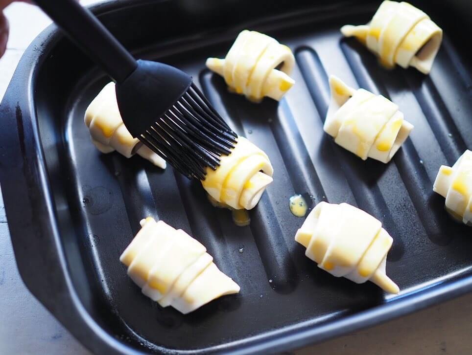 ツヤ出しに、黄身に少量の水を混ぜた卵液を表面に塗っていきます。