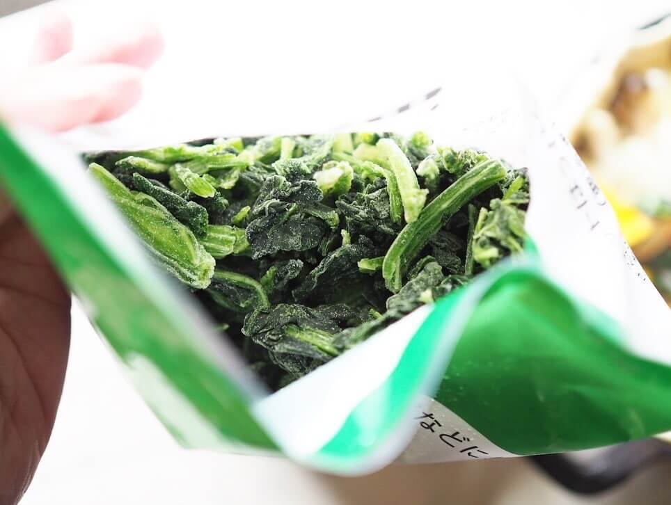 下処理済で冷凍されているので茹でたり切ったりする手間もなく、炒め物やラーメンなどに少し緑を足したいときにさっと使えるのも便利です。