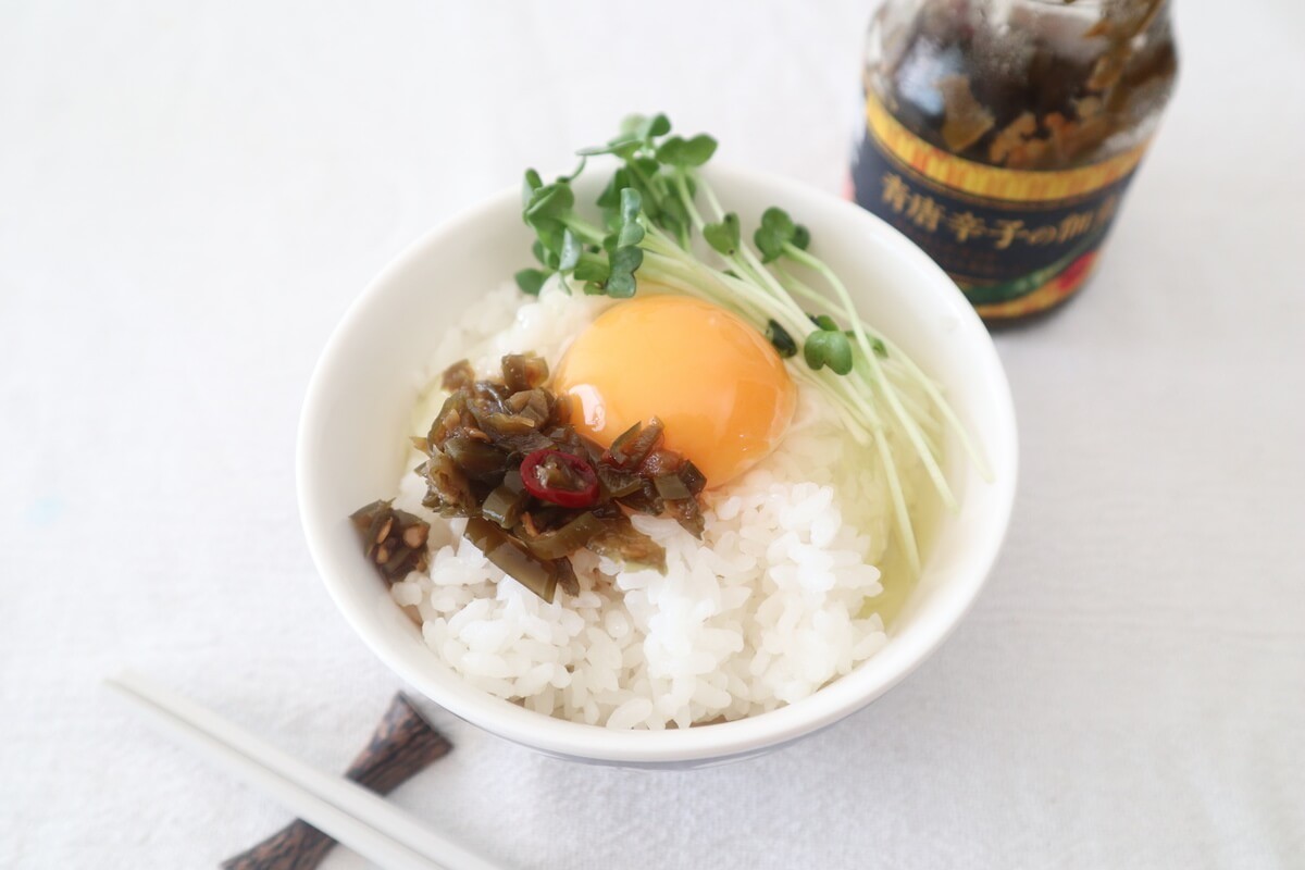 卵かけご飯に唐辛子佃煮をちょい足し。