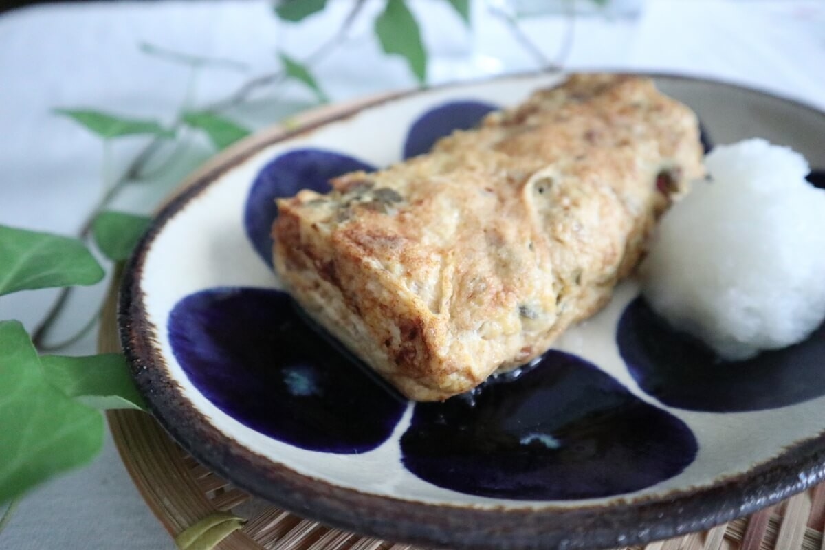 だし巻き卵も青唐辛子佃煮を卵液に加えるとご飯が進むおかずに変身!