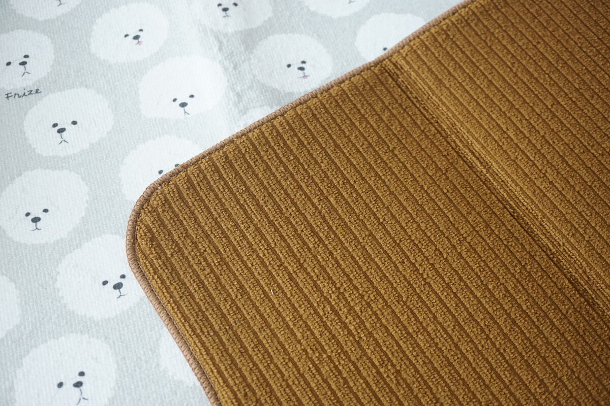 こちらの吸水マットは4~5回目ぐらいの洗濯でよれてしまったので、耐久性はあまりないかな・・・と思います。